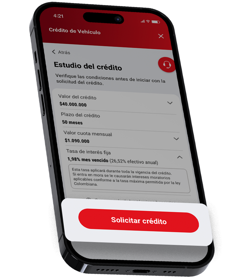 Financie su vehículo nuevo o usado en los concesionarios autorizados por Davivienda. También aplica para vehículo usado si lo vende una persona natural.