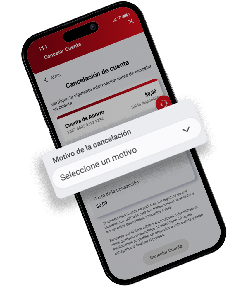 La cancelación de Cuentas se puede hacer por medio de la App Davivienda y/o www.davivienda.com.