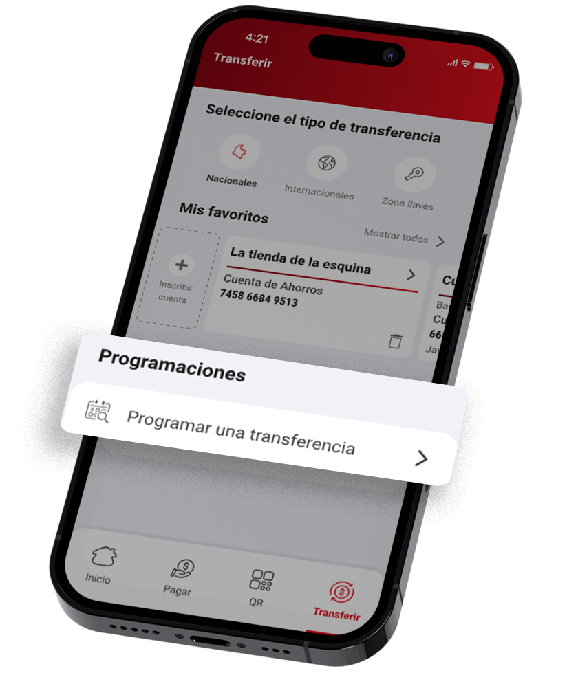 El servicio de programación de transferencias está habilitado para las Cuentas de Ahorro, Tradicional, Nómina, Pensión, Rural y Cuenta Corriente.
